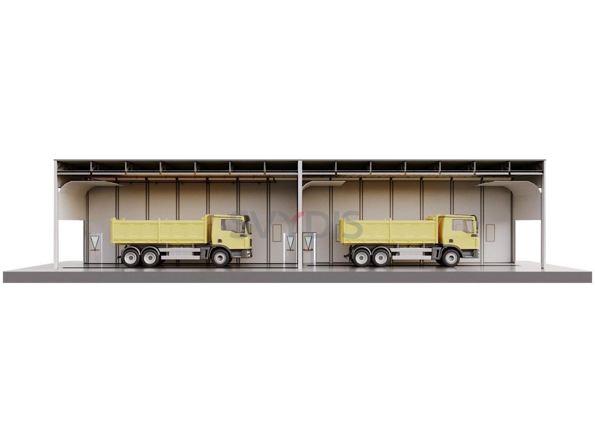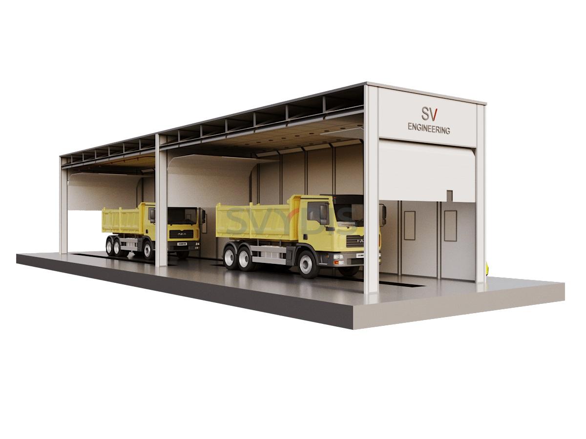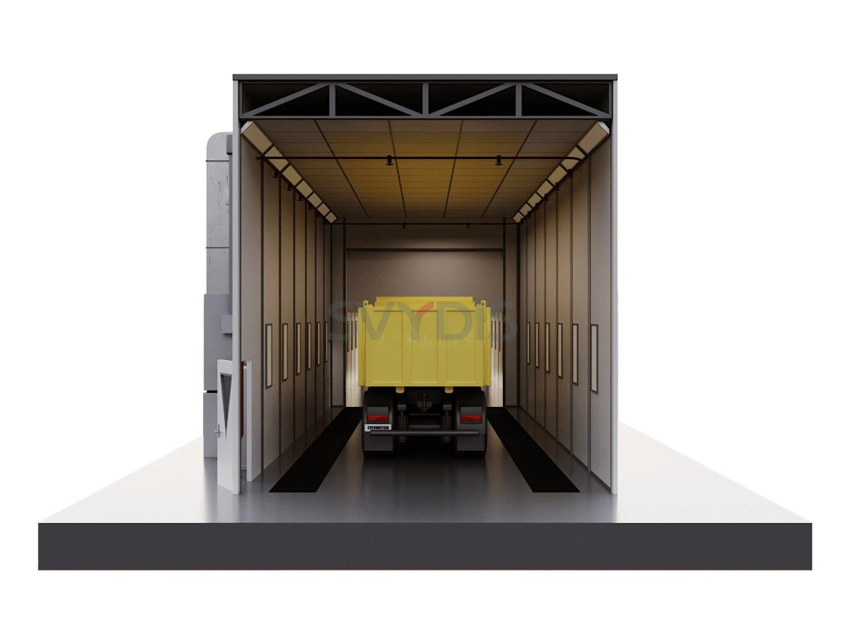 Комплекс подготовки и окраски проходного типа для грузовиков предназначена для подготовки поверхности, мойки, обеспыливания, обезжиривания, маскировки, а также нанесения на изделия лакокрасочных покрытий и их сушке при повышенной температуре.
