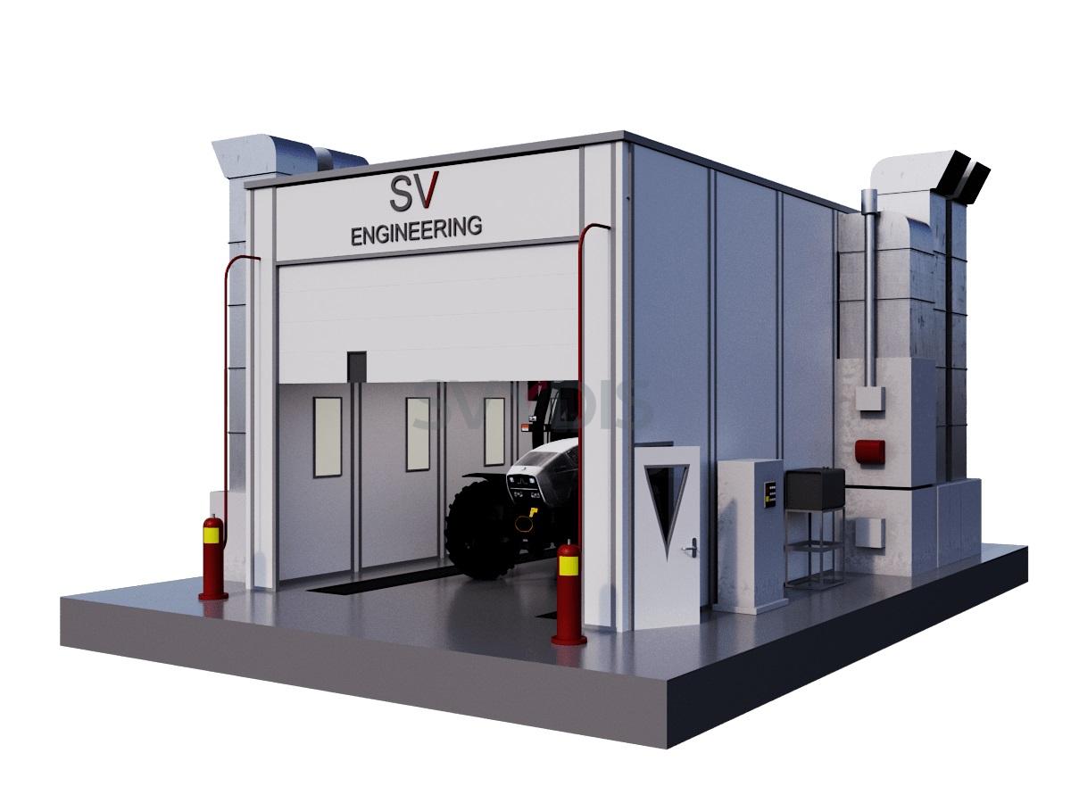 Окрасочно-сушильная камера тупикового типа для аграрной техники предназначена для подготовки поверхности, обеспыливания, обезжиривания, маскировки, а также нанесения на изделия лакокрасочных покрытий и их сушке при повышенной температуре.